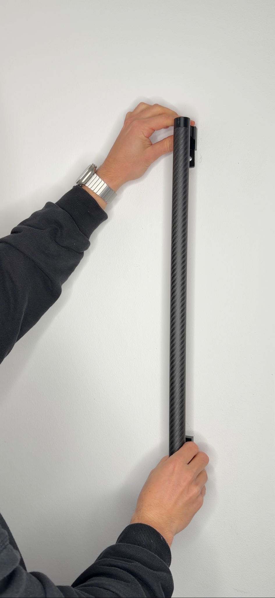2.Bohre die Löcher( je nach Wandtyp) mit einem 6 mm Steinbohrer und setze die mitgelieferten Dübel ein.